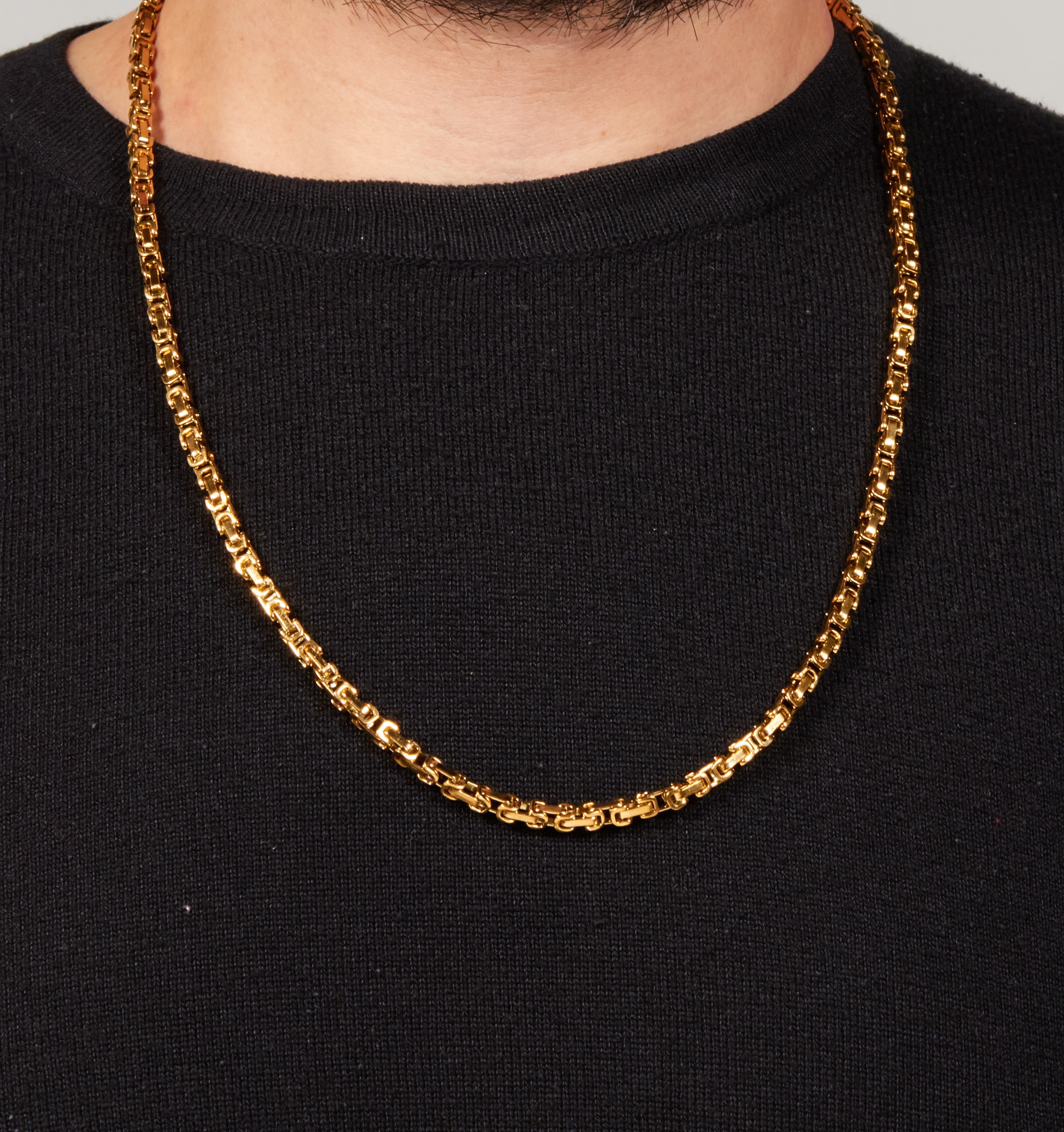 ALVIRUX – Cadena Rústica – Cadena de 4 mm de grosor y 65 cm de largo. Fabricada en oro laminado...